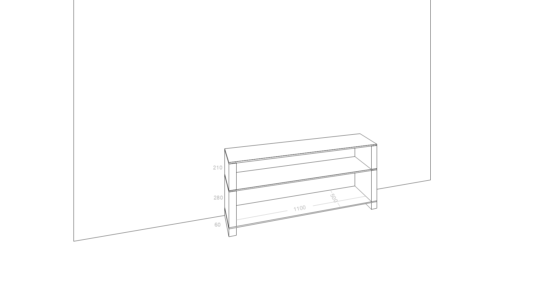 - Stellfläche innen (BxT): 1100 x 500 mm
