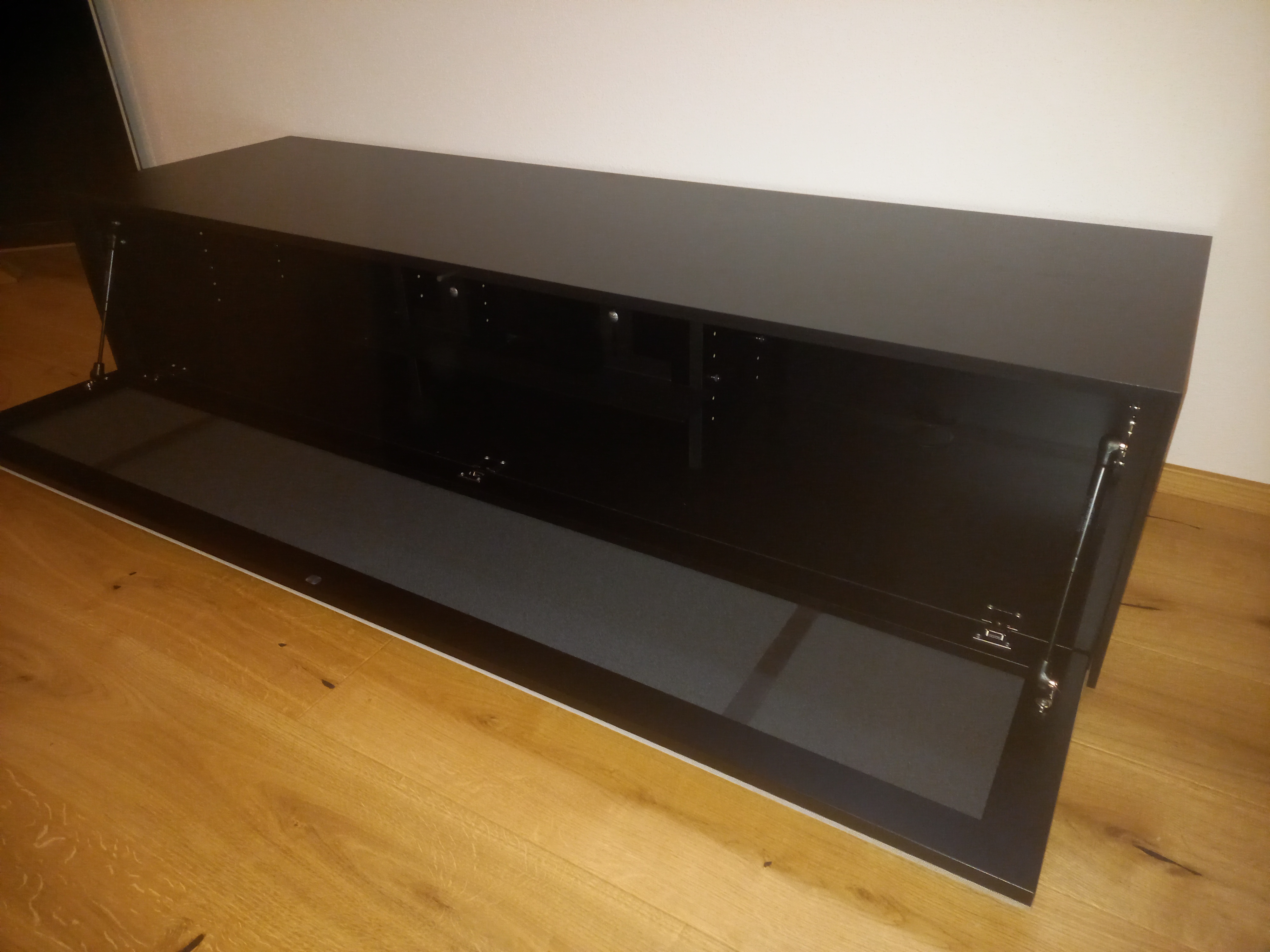In unserem Monaco TV-Möbel verfügen sämtliche Klappen und Türen über leise Selbsteinzüge sowie Softdämpfung mittels Gasdruckdämpfern. Das komplette Kabelmanagement wird intern im Möbel verlegt und versorgt damit sämtliche Zuspieler wie Bluray-Player, Spielekonsolen, Receiver etc. Die Fronten an diesem Medienmöbel sind grifflos und verfügen über die sogenannte 'Push to open' Funktion. Die Oberflächenhaptik ist wählbar zwischen einer Dekor-Oberfläche, einer seidenmatt lackierten Oberfläche oder aber auch mit dünnen Glasverkleidungen.