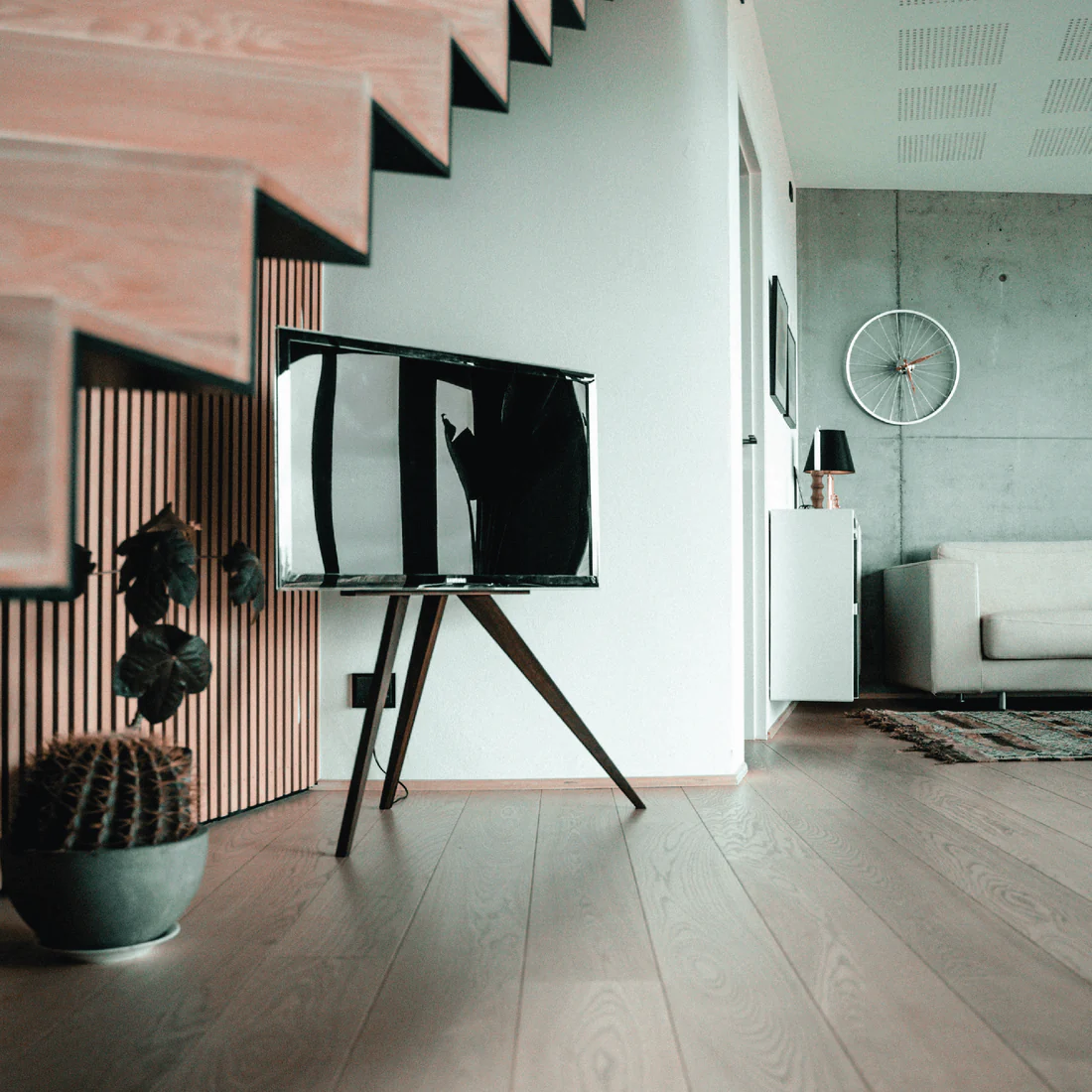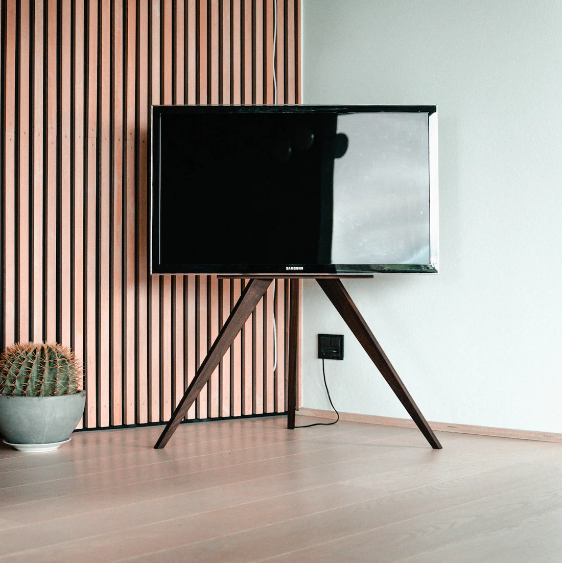Mit seinen drei Beinen bietet der Fernsehständer Ella Nussbaum die einzigartige