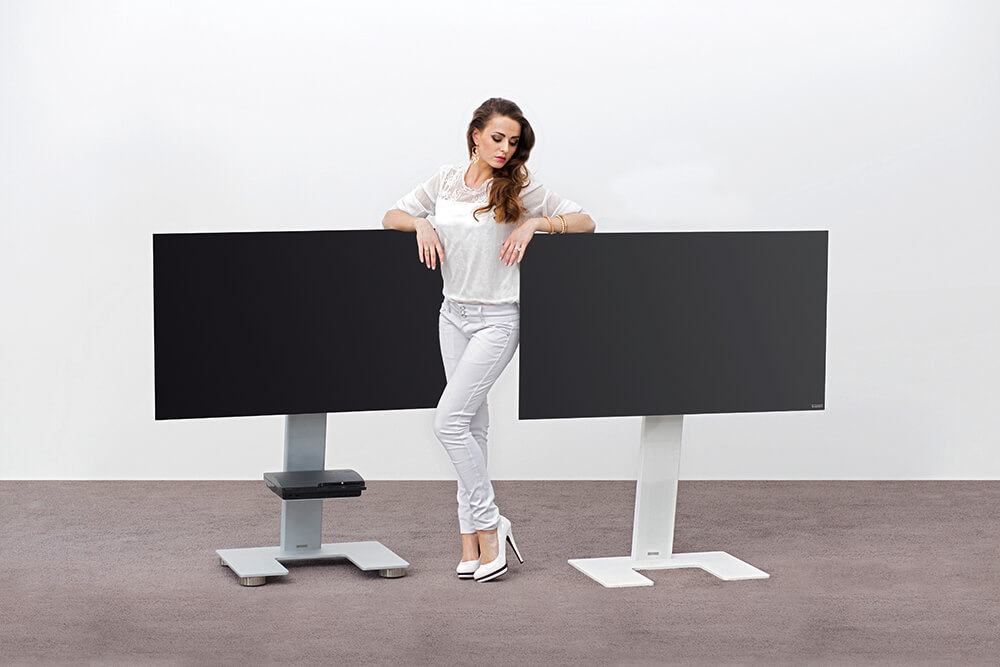 Auch beim TV-Stand Omega Art 111-E ist weniger mehr! Der minimalistische TV-Halter als Standversion besticht mit klarer Formensprache. Der TV-Halter mit dem eckigem Sockelfuß ist aus Stahl, lackiert, Feinstruktur matt. Die unsichtbare Kabelführung erfolgt innerhalb der senkrechten Säule. Die Höhe der Bildmitte ist ca. 100 cm. Die Befestigung des TV’s ist ausgelegt auf VESA bis 400 x 400 mm.